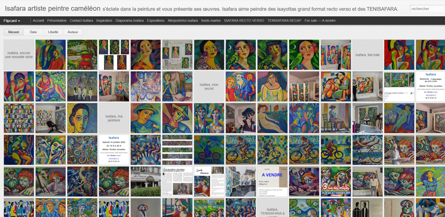 Depuis 2011, je publie l’ensemble de mon travail sur mon blog. Il rassemble toutes mes œuvres : grands formats, isayottas recto verso, Tenisafara, séries thématiques… C’est l’archive vivante de mon parcours artistique, année après année.
